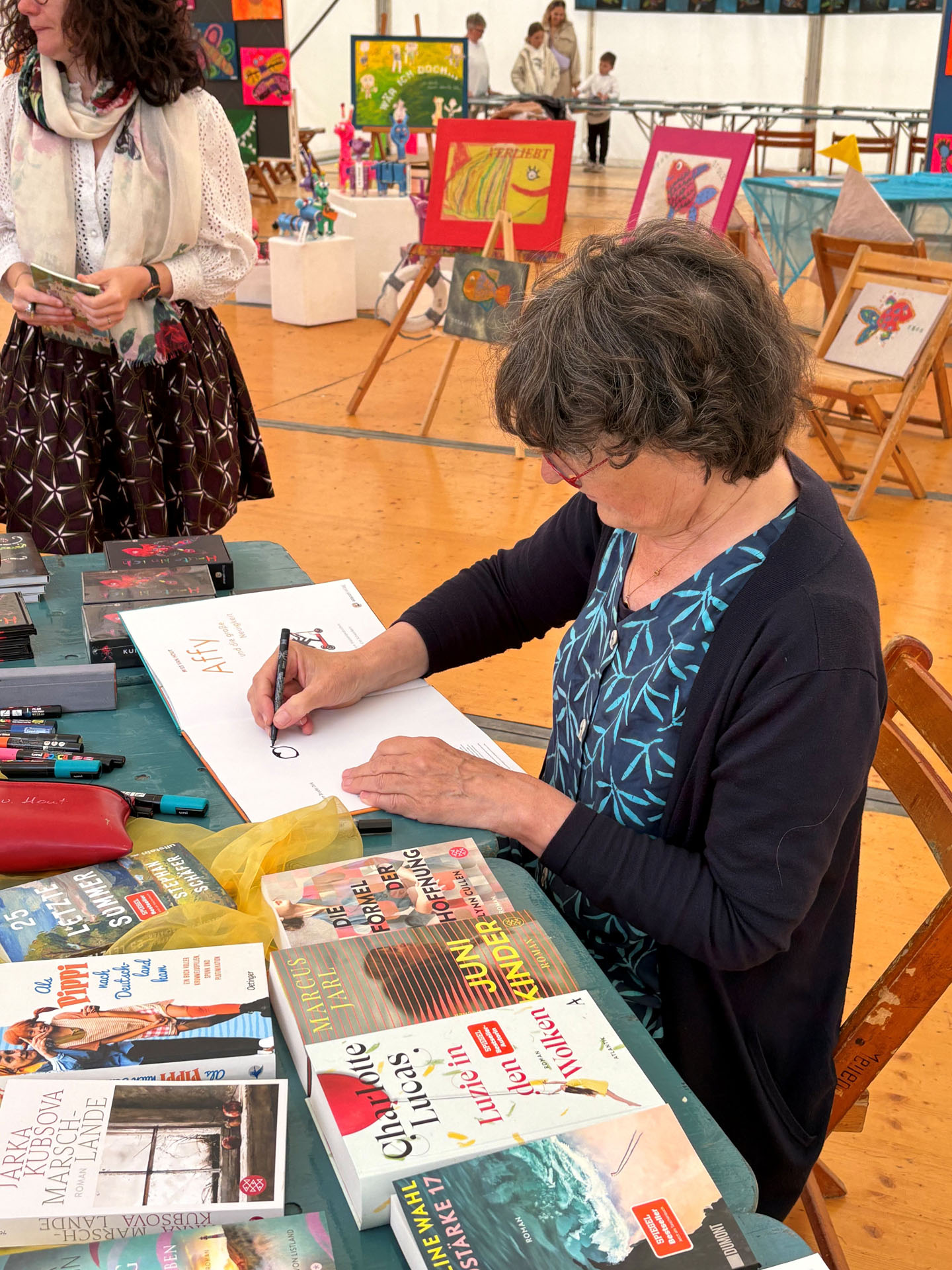 Am Dienstag fand der Workshop mit der niederländischen Künstlerin Mies van Hout statt. Eltern und Kinder hatten sichtlich Spaß. Hier ein paar Bilder der Veranstaltung: